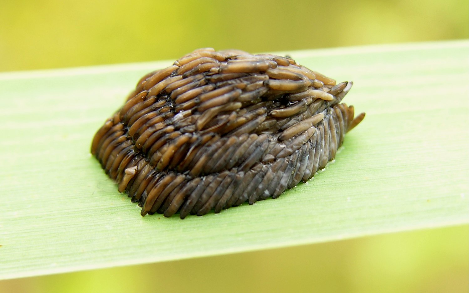 Iforbindelse med en tur til et søområde blev en læser fra Viborg opmærksom på en underlig samling af “æg” på et siv (formentlig dunhammer). Klumpen måler ca. 1,5 cm og består ved et nærmere eftersyn af mange små, aflange æg.