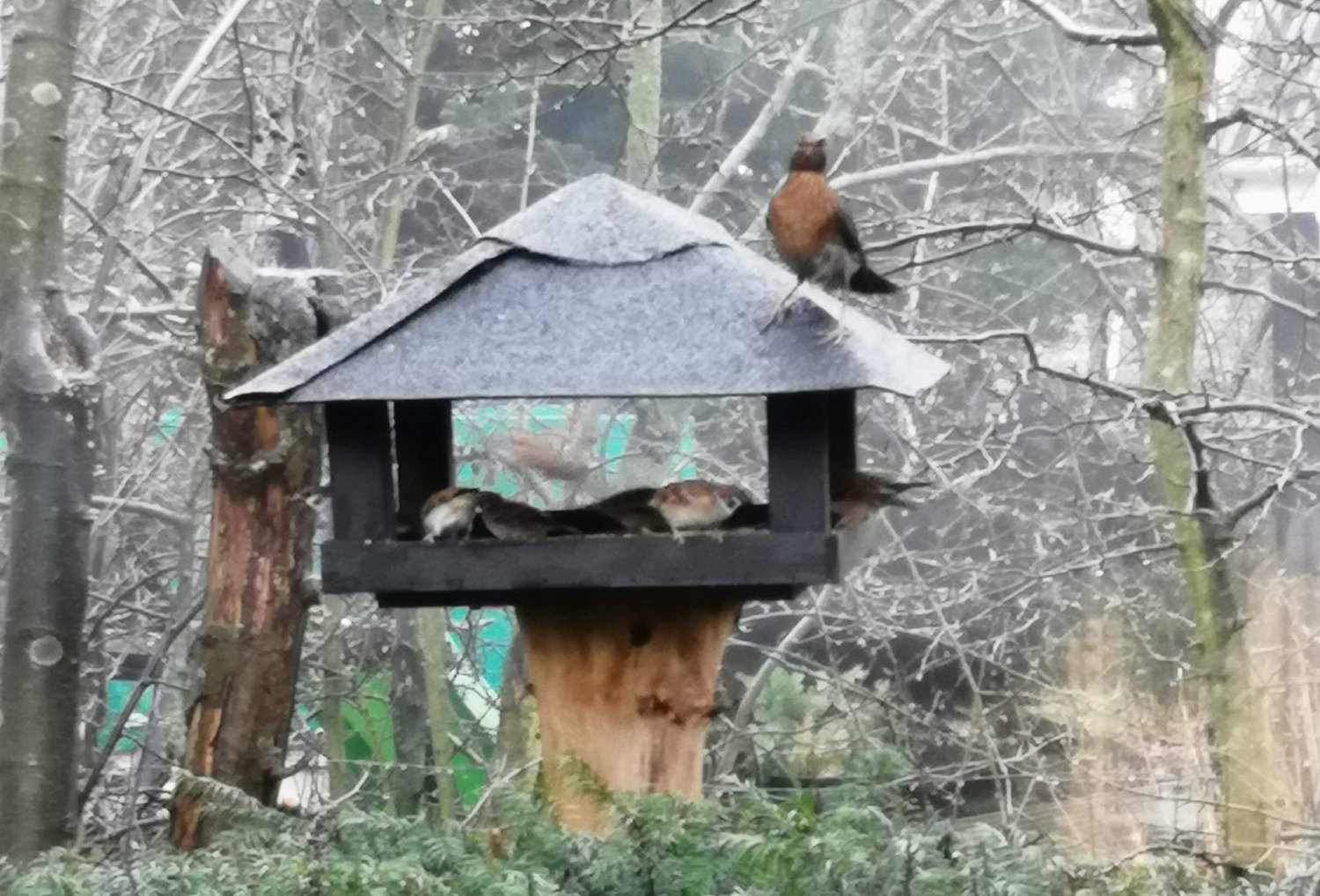 Fuglen er stor som en drossel og har rustrød bryst. Den udskiller sig i sandhed fra de gængse arter vi normalt ser på foderbrættet. NaturGuide.dk har forelagt fotoet for en fugleekspert fra Avifauna Consult og dommen er lidt nedslående. Det er hverken en sjælden vandredrossel eller rødbrystet drossel, der er på spil, men såmænd en farvevariation af en hun-solsort.