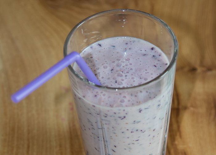 Det hel puttes i en blender og blandes godt. Hvis der ikke er isterninger i er det en fordel hvis alle ingredienserne har været på køl inden.