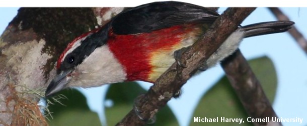 Den farverige fugl, som har en sort maske og en purpurrød bryst, blev faktisk opdaget allerede tilbage i 2008 under en ekspedition med studerende fra Cornell University ledet af Michael G. Harvey. Arten er dog først nu i 2012 blevet beskrevet og godkendt af videnskaben bl.a. efter DNA-prøver fra indsamlede eksemplarer.