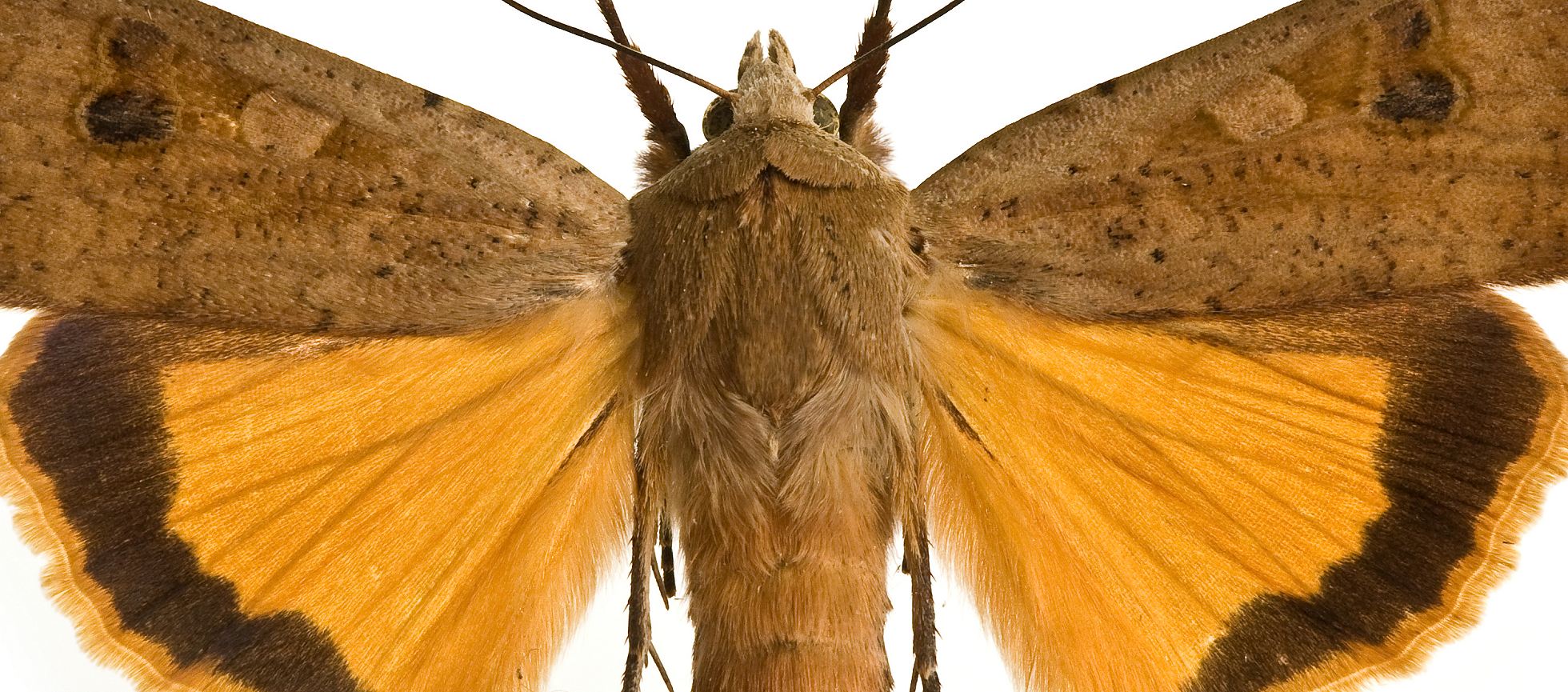 - Bagvingen kan variere fra knaldgul til gul-orange med et sort bredt bånd hen over.