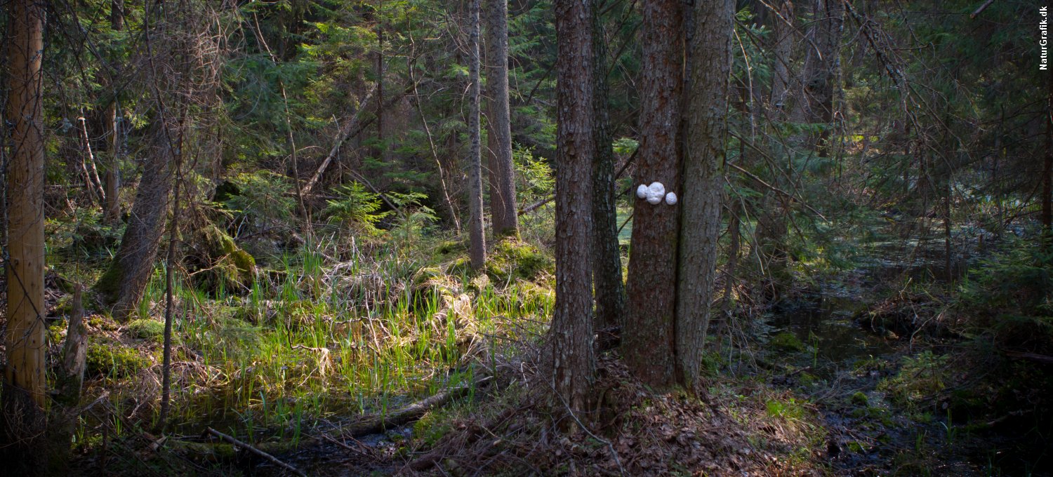 Disse forunderlige væsener har stået vinteren igennem og nu transformerer de sig ud på træets overflade, hvor de danner frugtlegemer og laver sporer i bedste svampestil.