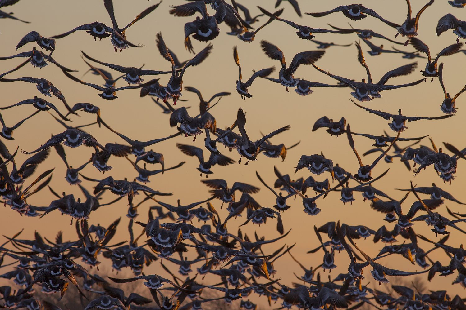 Det er en storslået og imponerende naturoplevelse at være vidne til tusinder og atter tusinder af trækkende gæs der forår og efterår rejser over vores land. På udvalgte steder langs den jyske vestkyst kan de store gåseflokke opleves på nært hold. Det gælder særligt for kortnæbbet gås og bramgås. Naturfotograf og naturvejleder Niels Lisborg har fulgt gæssene på deres aktuelle forårsrejser mod ynglepladserne i nord og fotograferet fuglene under deres ophold i områderne omkring Skjern Enge og Tipperreservatet. Det er der kommet en lille billedserie ud af.
