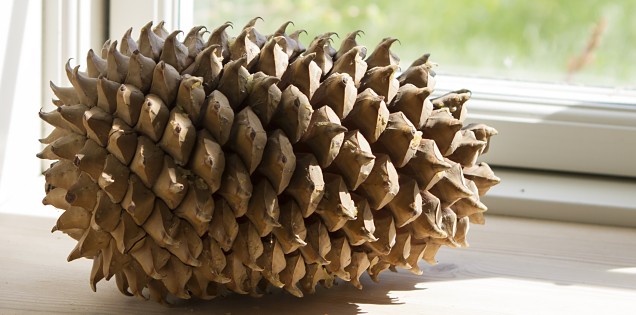 Det fik mig til at få fornyet interesse for den store kogle og ved lidt hurtig research fandt jeg ud af at koglen, meget passende, stammer fra kæmpekoglefyrren (Pinus coulteri), der slet ikke stammer fra New Zealand, men fra Amerika. Mere præcist fra de kystnære bjergområder i det sydlige Californien.